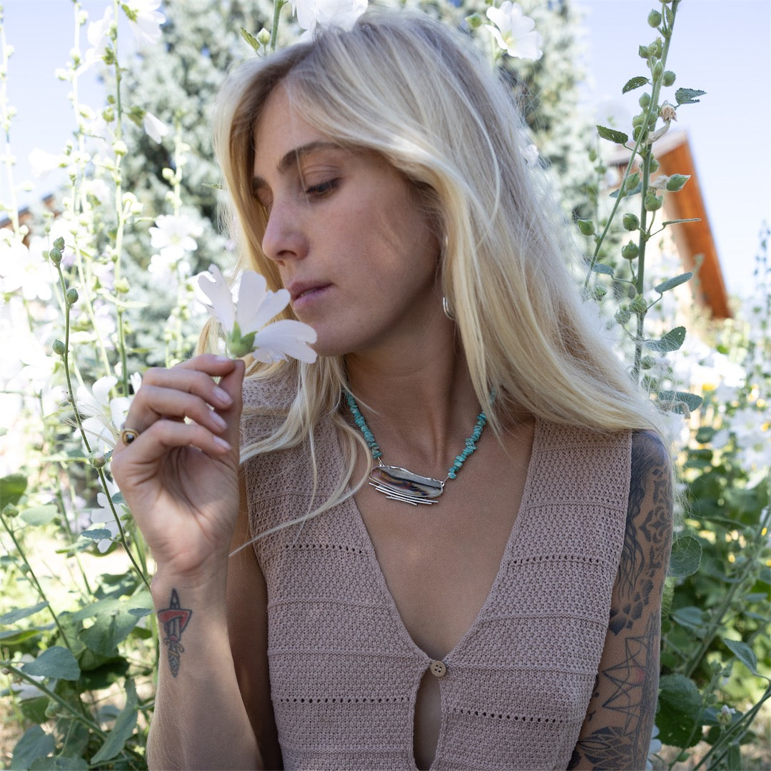 In a world filled with distrust, you can rest assured that my jewelry is the real deal. I use recycled silver and American-mined stones, which I always hand-select from small businesses — including my dear friend Sally, who often directly knows the miners. This is so damn important to me. Each component is hand-fabricated with my two hands, a slow and patient process infused with so much care and love.